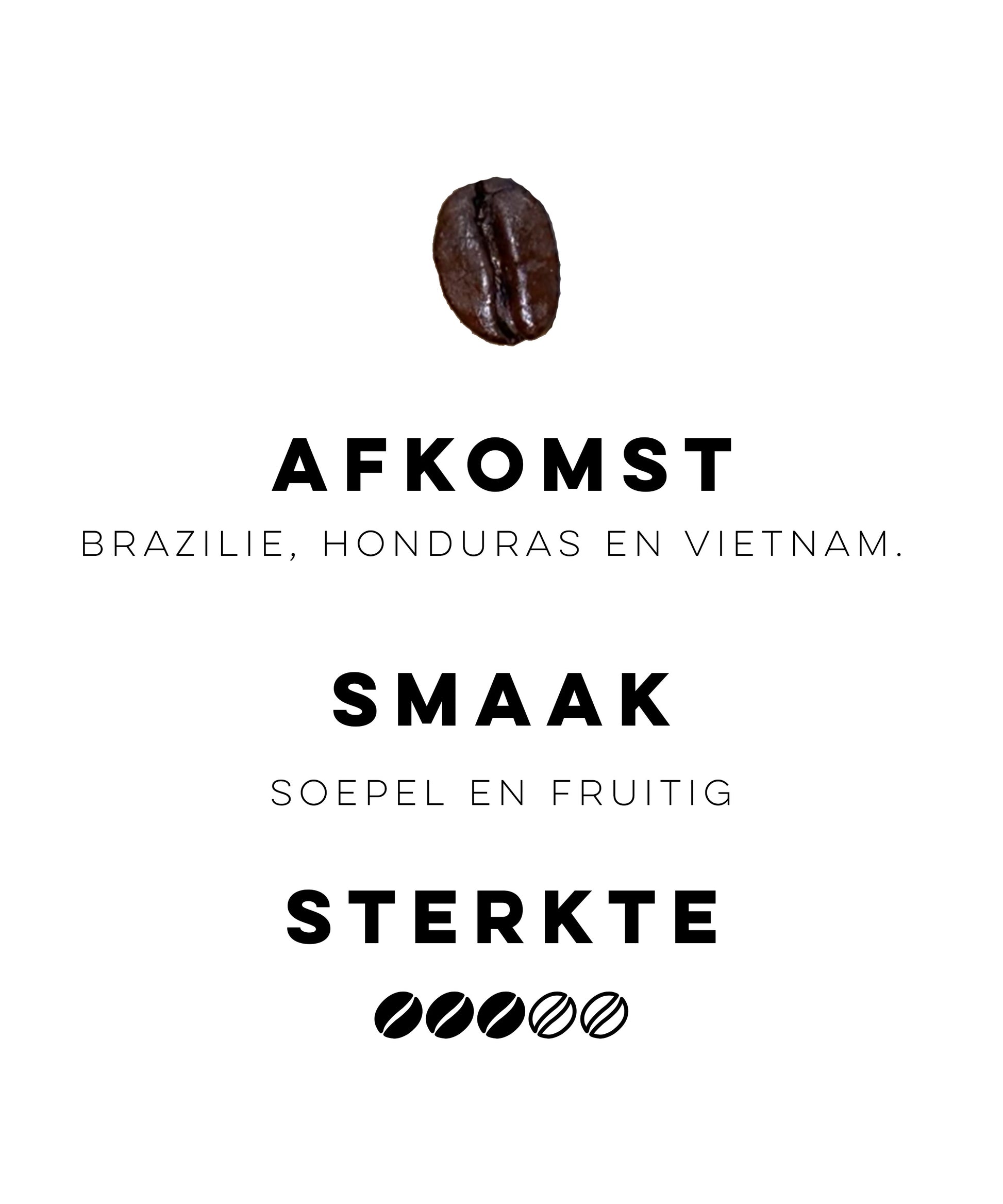 Deze koffiebonen melange is voornamelijk afkomstig uit midden en zuid Amerika. Ook zit er een kleine hoeveelheid Aziatische Robusta bonen in.