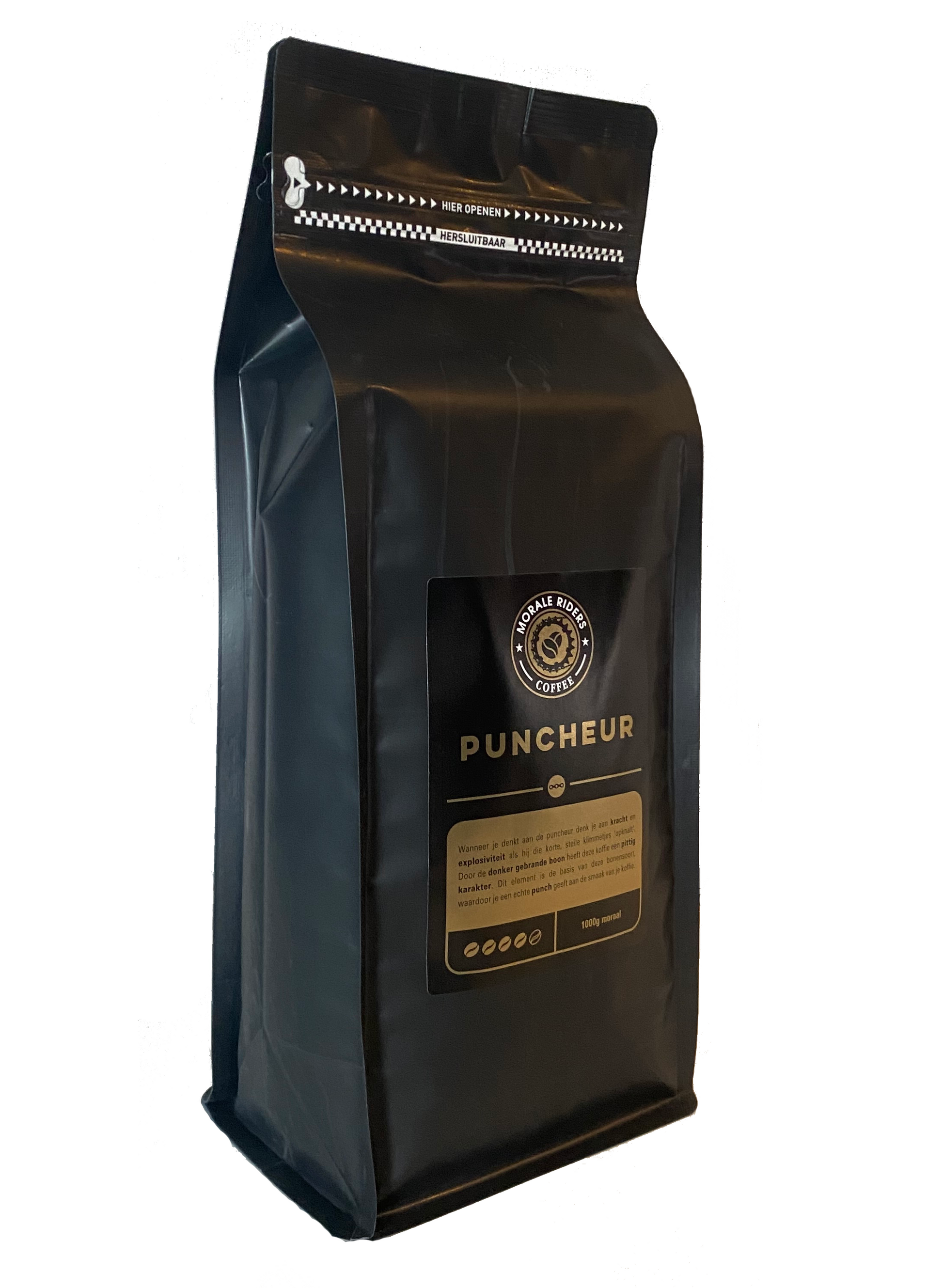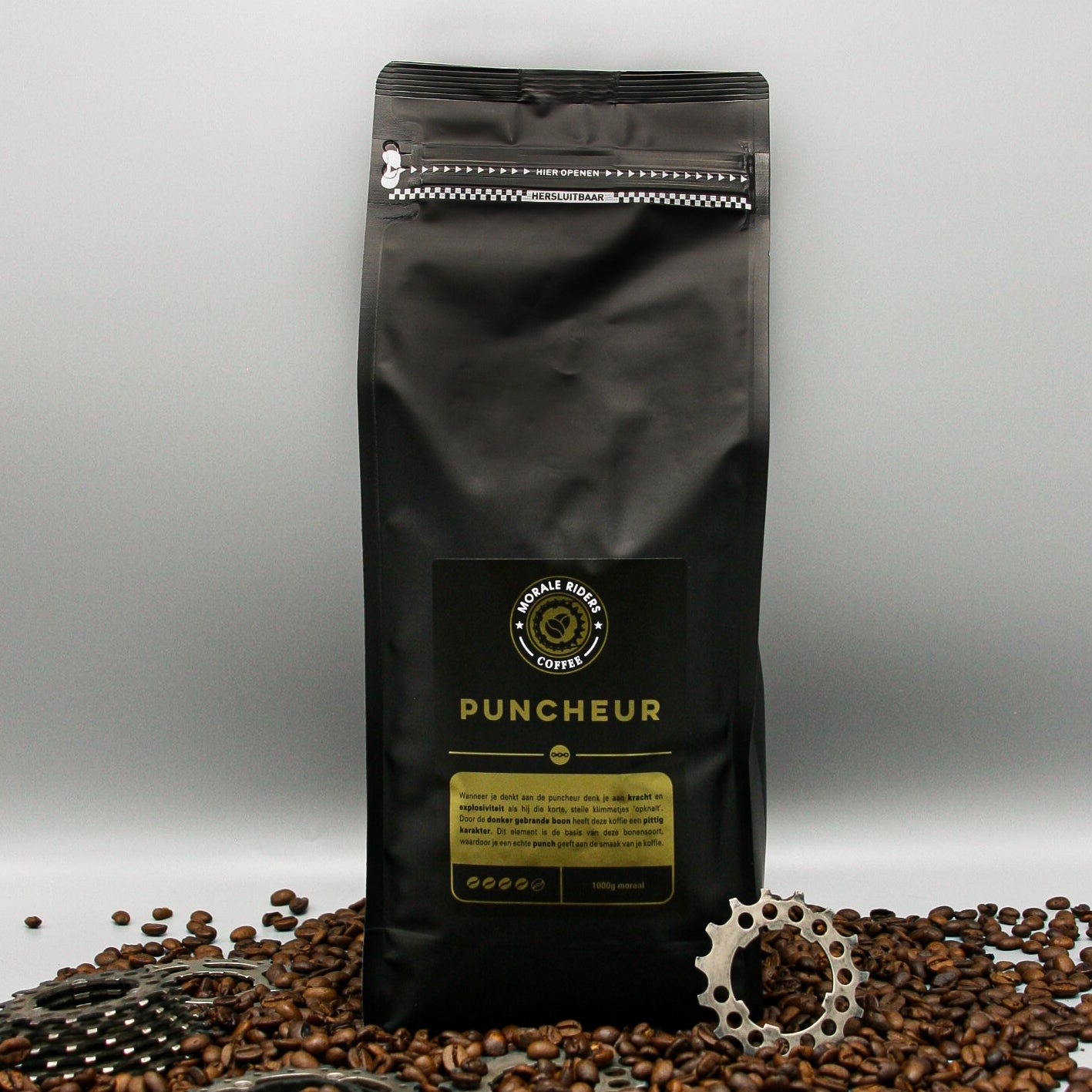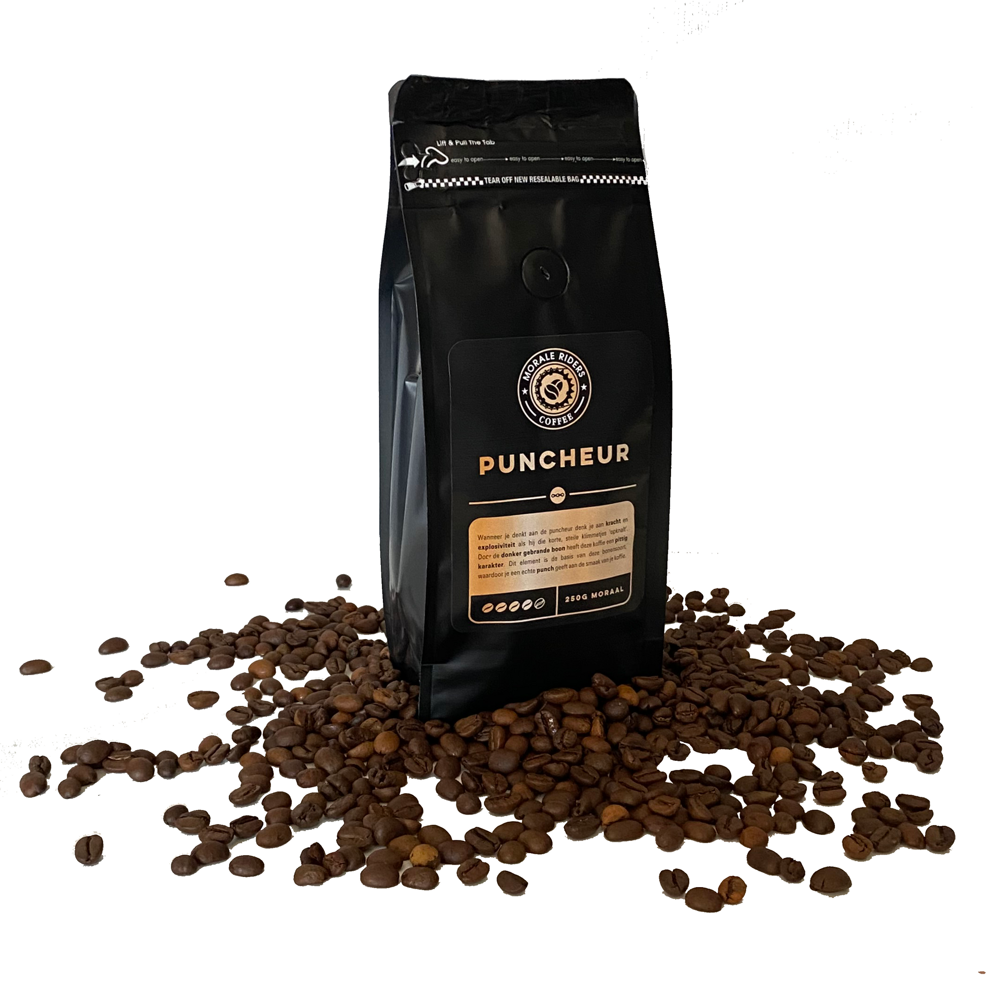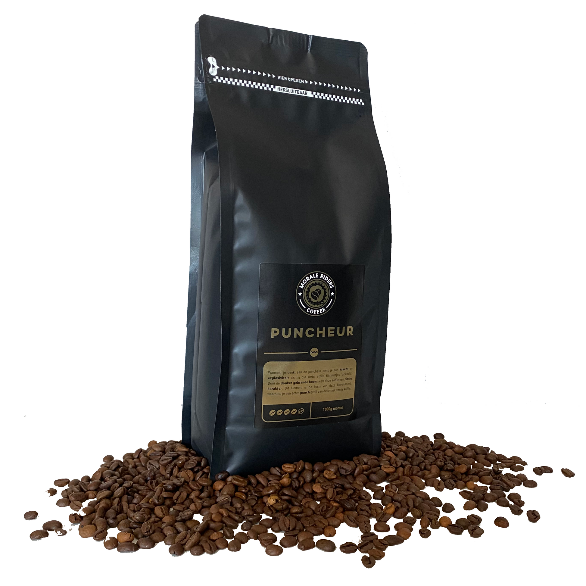 Puncheur is een espresso blend die kracht en explosiviteit combineert. De donker gebrande bonen zorgen voor een authentiek en pittig karakter, wat een echte punch geeft aan de smaak van de espresso. De melange heeft een intense smaak met een donkere ondertoon, die doet denken aan donkere chocolade en gekonfijt fruit. Deze 1000 gram moraal arabica melange komt voornamelijk uit midden- en Zuid-Amerika en is perfect als oppepper. Ontdek de kracht van Puncheur en ervaar een unieke en intense espresso ervaring.